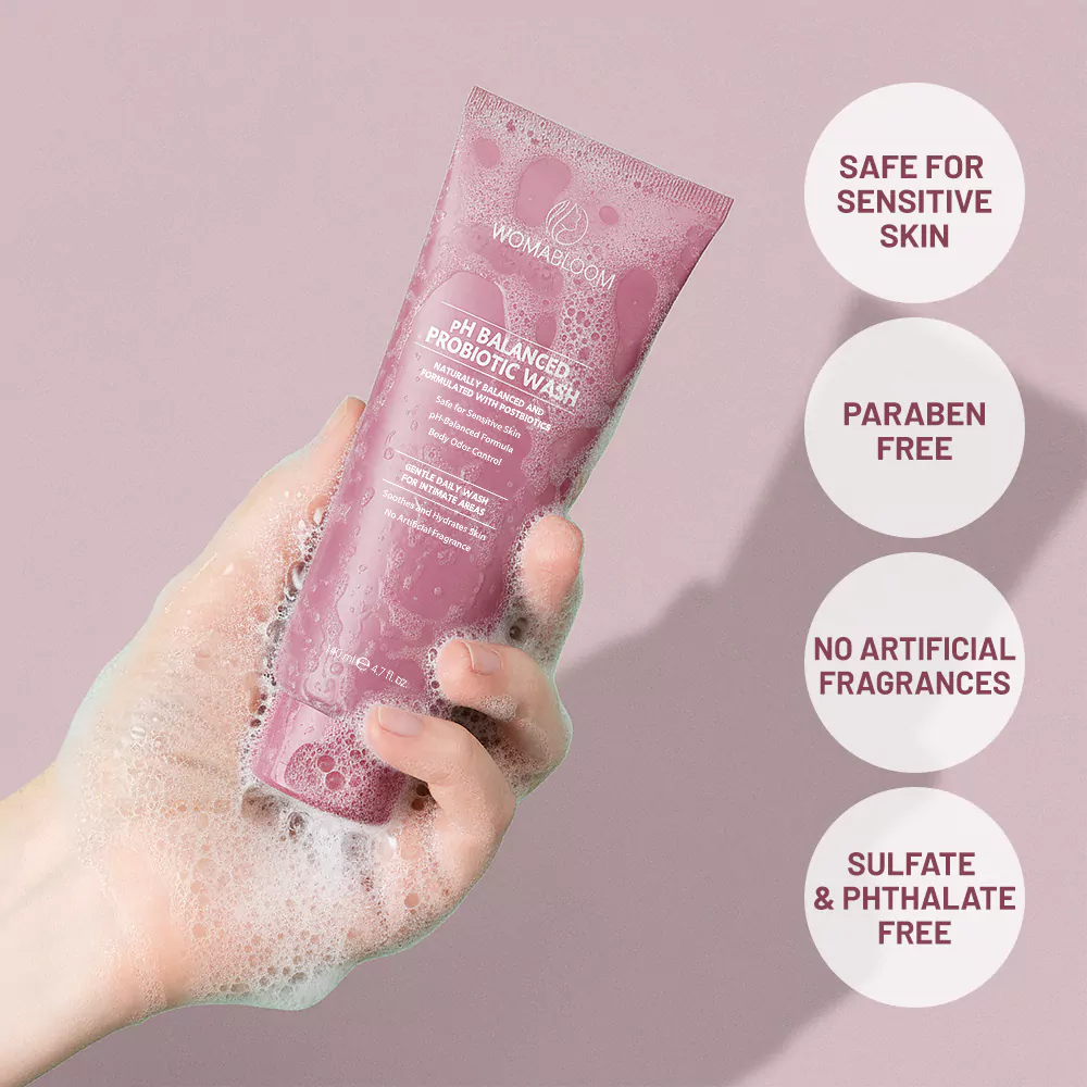 Da, pH Balanced Probiotic Wash je skrbno oblikovan tako, da je varen za občutljivo kožo in intimne predele ter nežno čisti brez draženja.