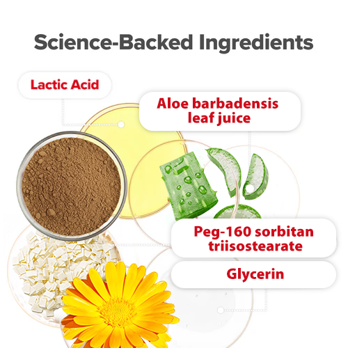 Ta mešanica vsebuje sok listov aloe barbadensis, izvleček ognjiča in izvleček kamilice, ki pomagajo pomiriti, umiriti in pomiriti občutljivo kožo.