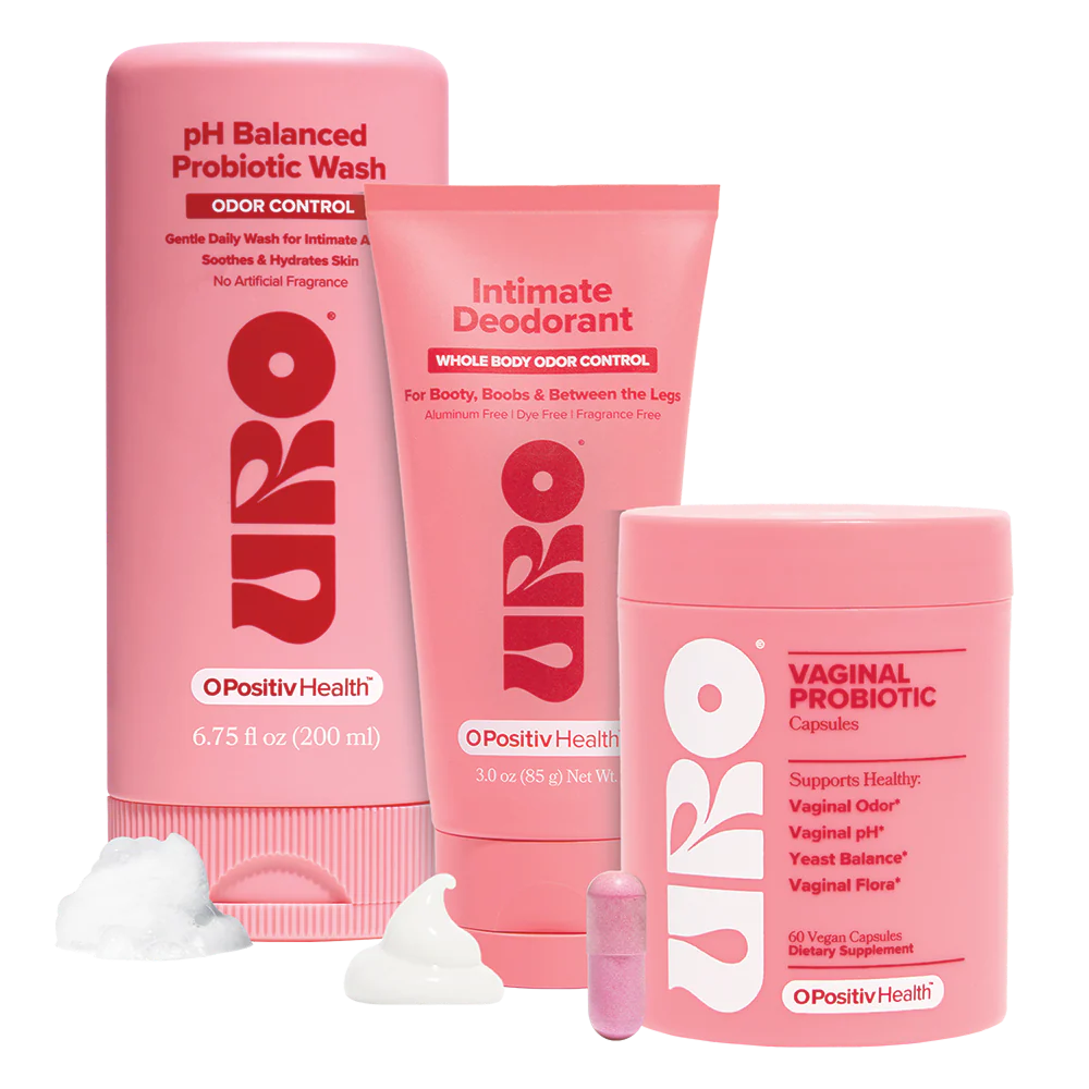 Feel confident & fresh all day with probiotics & intimate care. Includes URO⁺ Vaginal Probiotic, Intimate Deodorant & pH-Balanced Probiotic Wash.