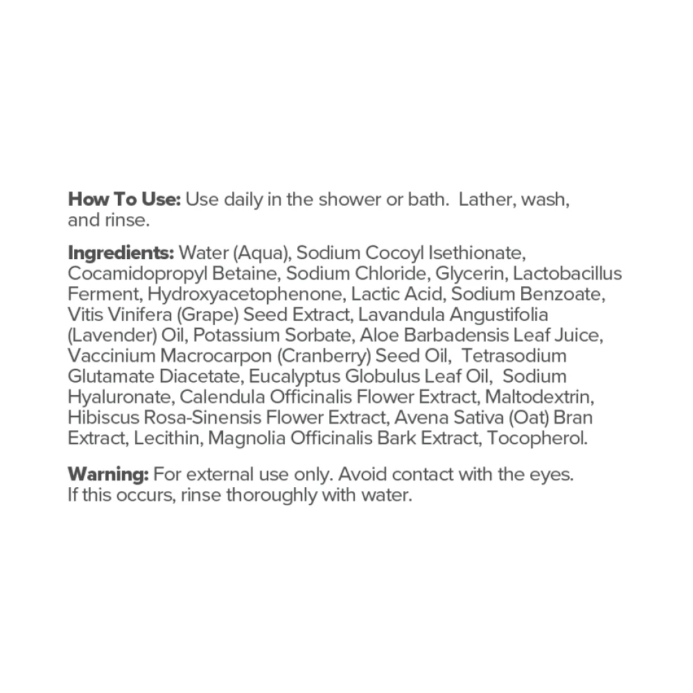 pH-Balanced Probiotic Wash Ingredient Facts